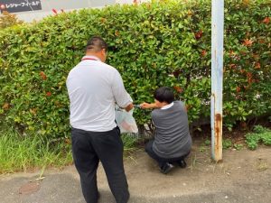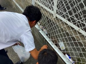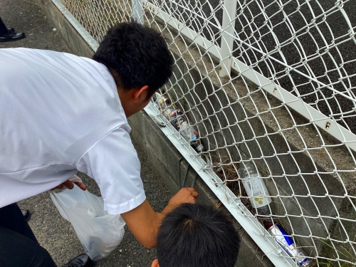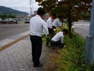 3年生は16日、学校周辺道路の清掃活動を行いました。クラス毎に担当場所に分かれてゴミを拾いました。