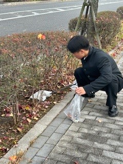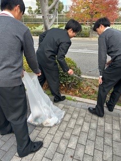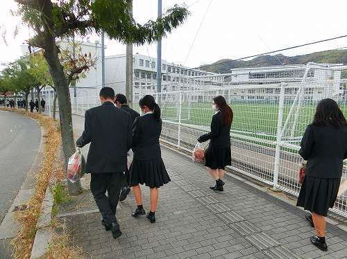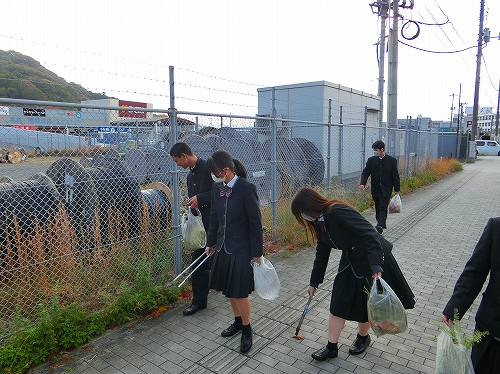 1年生は学校周辺道路の清掃を行いました。クラス毎、担当場所に分かれて、ゴミ等を拾ってきれいにしました。