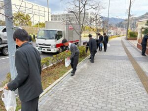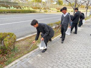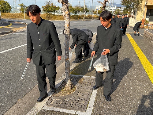 2年生は学校周辺道路の清掃を行いました。クラス毎、担当場所に分かれて、ゴミ等を拾ってきれいにしました。