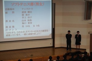 総合学習の時間に、新1年生対象に クラブ紹介がありました。各クラブの部長が活動の様子などを説明しました。