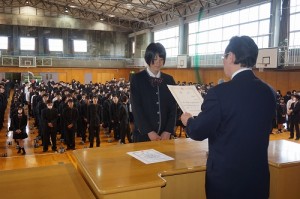 生徒集会で、クラブ活動の表彰伝達を行いました。