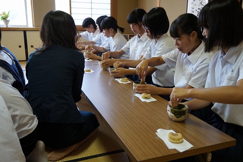 △体験授業 美術部『オリジナル缶バッヂをつくろう』、茶道部の『お茶会』と、ミニ公演で筝曲部の様子