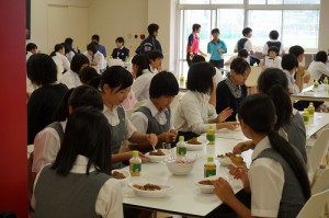 午前中は学校紹介と各教科の模擬授業を中心に行い、午後からは、希望者による食堂無料体験とクラブ見学・体験がありました。
