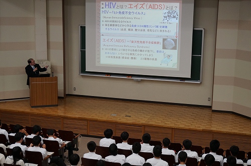 6月1日、総合学習の時間に1年生は、広島県西部保健所広島支所の医師、大林弘昌先生に講師として来て頂いて、健康教育を実施しました。 「若者に広がる性感染症」という演題で、最近の性感染症の動向や予防について教えて頂きました。