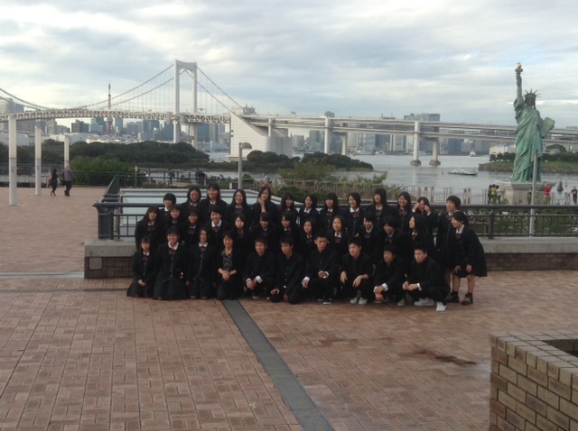 午後から晴れてきて、お台場でやっとクラス集合写真が撮れました!!