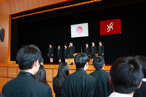 校長先生、生徒会長から激励の言葉の後、選手の代表が決意を述べ、全校生徒から拍手で激励しました。