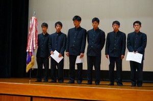 生徒朝礼でクラブ活動の表彰伝達を行いました。