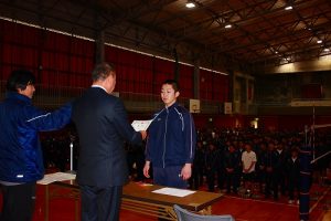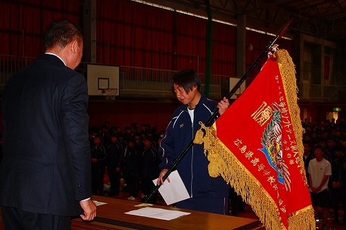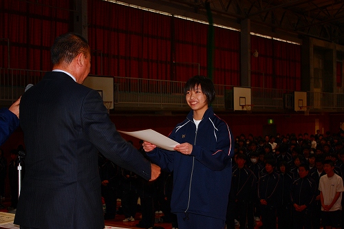 15日、ソフトテニス部、剣道部、空手道部、珠算部、書道、商業科論文の表彰報告を行いました。