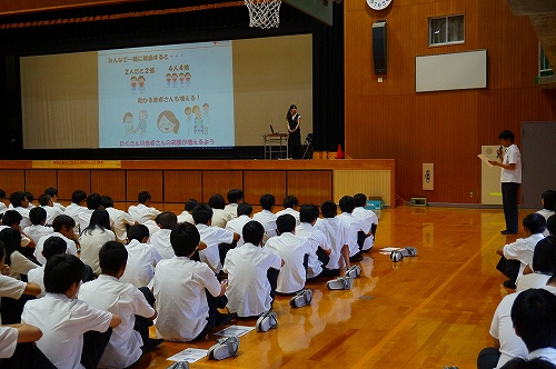 今年も翔洋祭で校内献血を実施いたします。14日、全校生徒対象に、広島県血液センターの徳永有香先生に講演をして頂き、献血の事前学習を行いました。 翔洋祭当日は、保護者の皆さまなど来校者の方々の多数のご協力をお待ちしております。