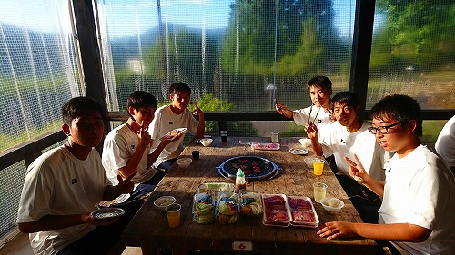 特進コースの生徒は全学年を対象に、8月7日から2泊3日の日程で恒例の学習合宿を呉市にあるグリーンヒル郷原にて実施しました。自然に囲まれた静かな環境で、参加者35名全員がしっかり学習しました。初日には外部講師による進路講演を行い、2日目の夕食にはバーベキューなど、メリハリをつけながら充実した3日間を過ごしました。