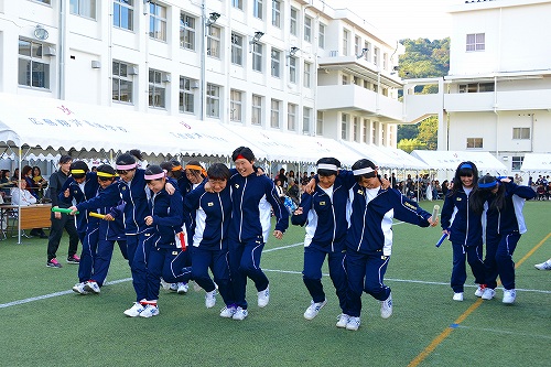 今年は、赤組、白組、青組、黄組、桃組、橙の6チームに分かれて、生徒会企画の競技が行われました。新たな種目として、1、2年生による集団行動や3年生のフォークダンスが企画されました。PTA参加種目もあり、保護者、教員ともに汗を流しました。
