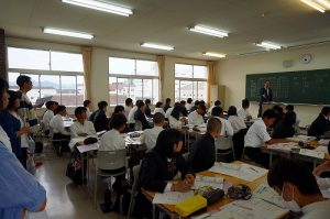18日土曜日に、公開授業とPTA総会がありました。 1校時目が公開授業、10時からPTA総会、11時から2年生は修学旅行の説明会、1・3年生は学級担任との懇談という日程で行いました。