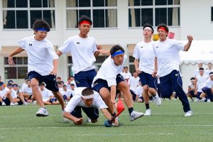 9月28日(土)、体育祭を開催しました。 吹奏楽部によるマーティングバンドで始まり、赤組、白組、青組の3チームに分かれて、新たな種目の1年生男子による「えっさっさ」を含む全22種目を行いました。PTA参加種目もあり、保護者、教員ともに汗を流し、令和元年度は、赤組が優勝しました!